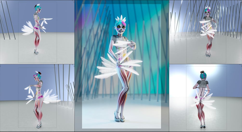 Joliette Fleurs - Ballerina-thin, newer and more different mesh and rig than even Giazelle. Advanced face rig. Rig has far fewer drivers (but more constraints) than the other characters. I will be re-doing some other characters to follow the techniques I used on Joliette.